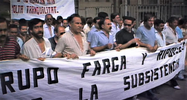 El Pedro Carmona (a la dreta, de verd) durant una manifestació dels treballadors de la Farga Casanova de Campdevànol. Anys 80.